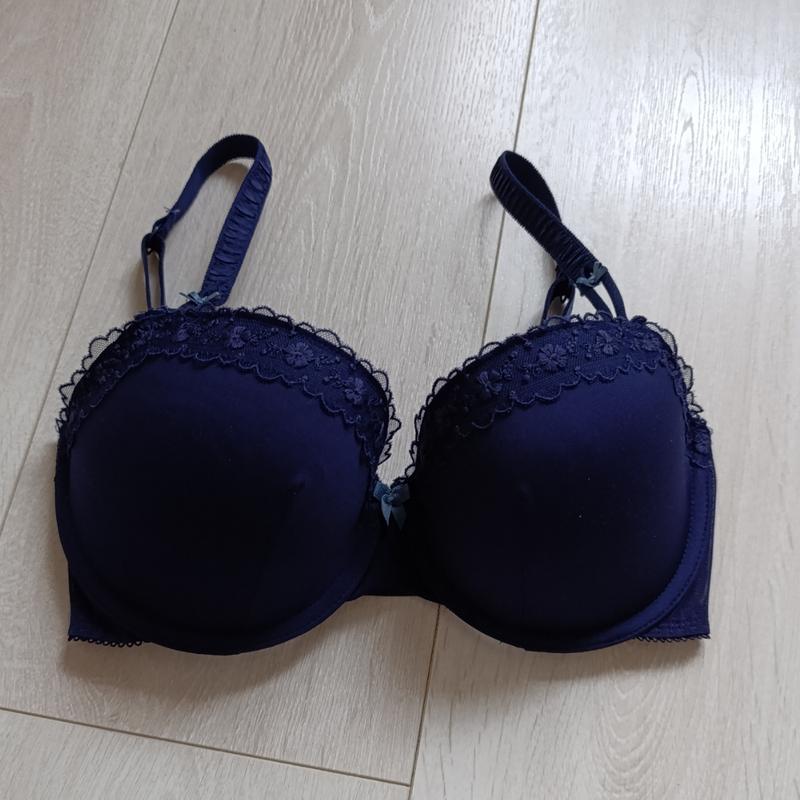 очень красивый базовый синий ажурный бюст от любимого бренда M&S размер 70dd 70e чашка на косточках хорошо держит грудь брительки регулюються в новом состоянии