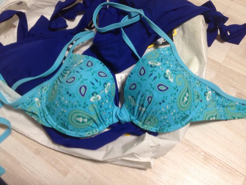Новый верх от купальника , фирменный из Германии ,с этикетками, бирюзовый с синем цвет , с пушапом по всей груди - приподнимает грудь . тянется. Перешлю.