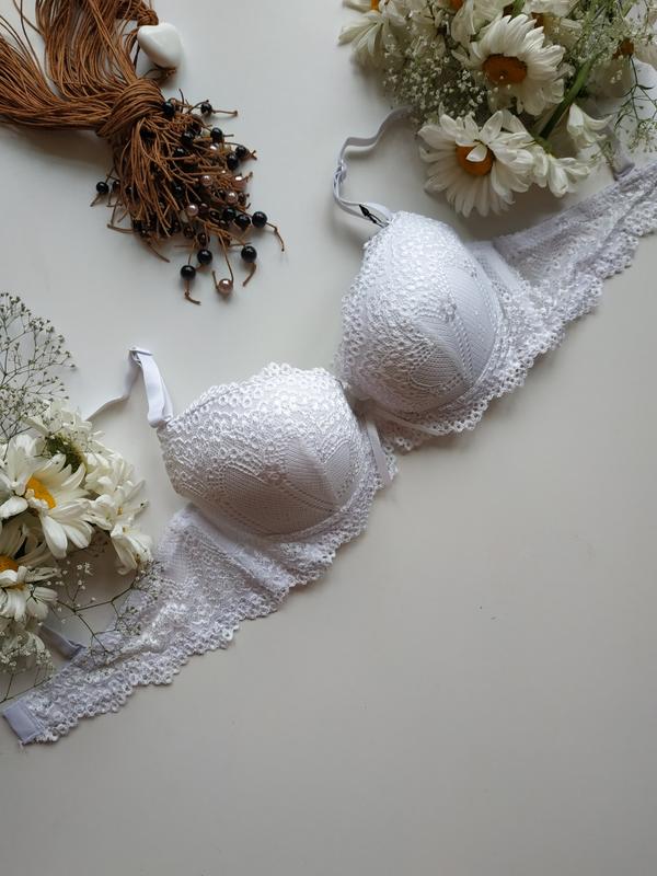 Бюст на чашку А, з мереживом. З ПУШАПОМ 😍 ✔️Бюстгалтер на чашку А, ніжне мереживо, приємне до тіла🥰 ✔️Бюстгалтер з пушапом ✔️Розмір 70,75,80А ✔️В наявності білий колір ✔️ Брительки знімаються ✔️ ‼️Акційна ціна 160грн‼️