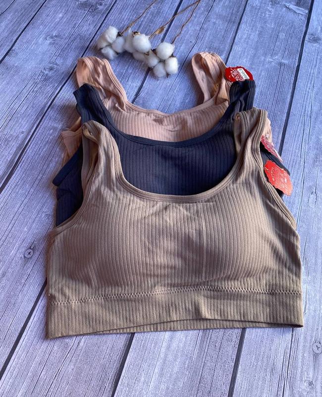 Неймовірно зручні топи в рубчик з тонким паралоном, вставочки паралону виймаються, підходять на чашку В /С, об'єми 75, 80, 85, 90, 95