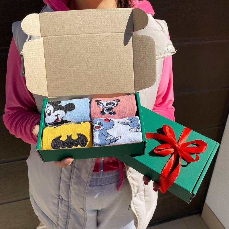Набір жіночих мультяшних шкарпеток 36-41 4 пари у коробці та із стрічкою