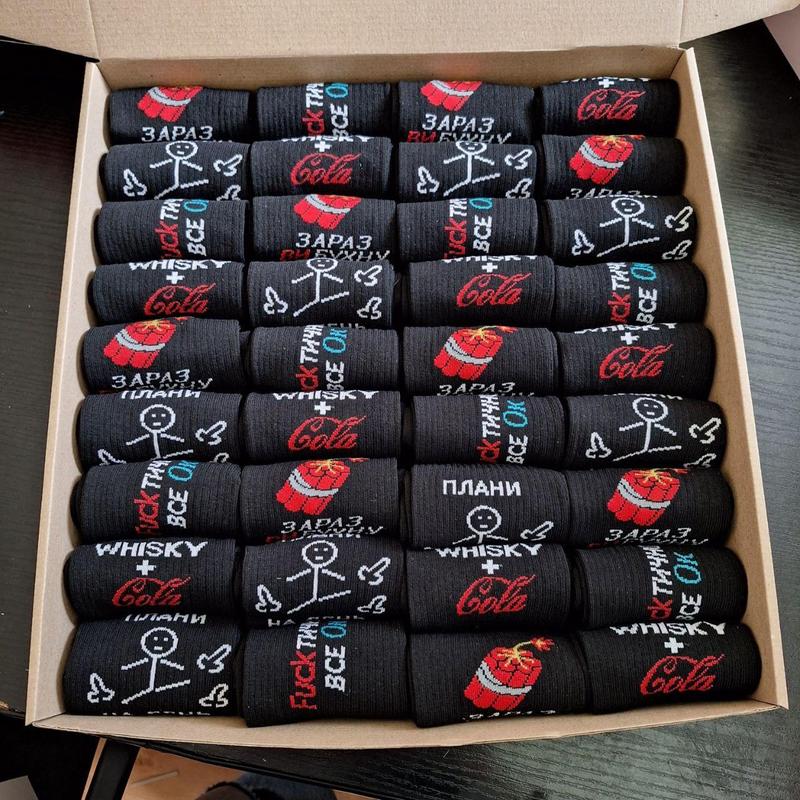 В комплект входить 36 пари шкарпеток та упаковка. - Розмір універсальний 36-41 - Сезон: Літо-Осінь-Весна - Довжина: висока - Преміум якість, гатунок 1 - Малюнок вишивка, не стирається. - Виробник: Україна - Склад: Бавовна - 90%; дорлостан - 10%