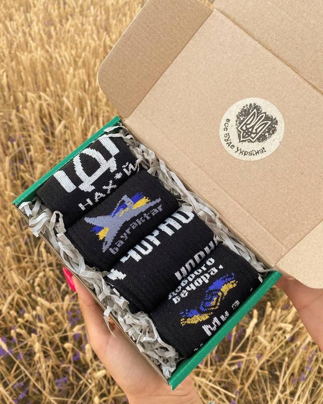 Бокс патріотичних жіночих шкарпеток 4 пари 36-41р у зеленій коробці|швидка доставка|