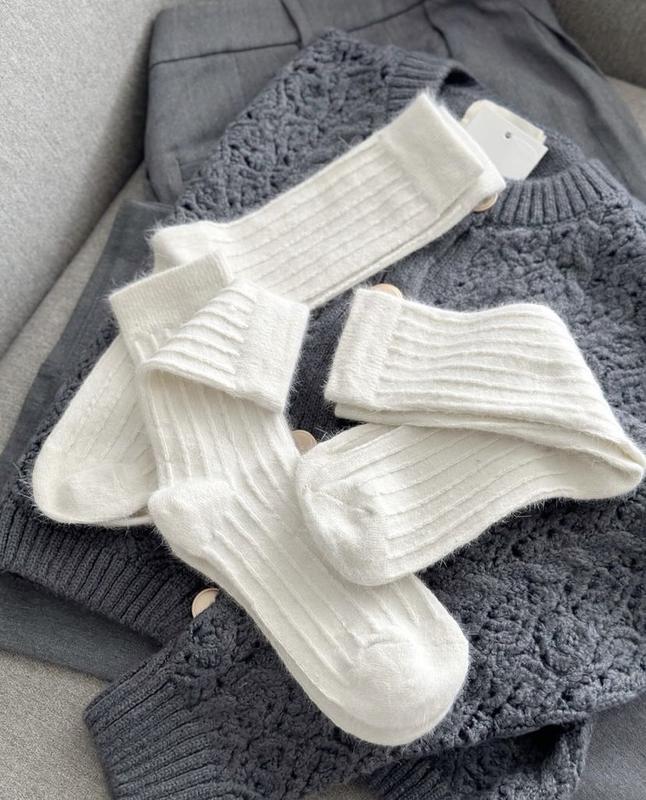 Высокие белые носки из шерсти альпаки Размер 37-41 80% альпака