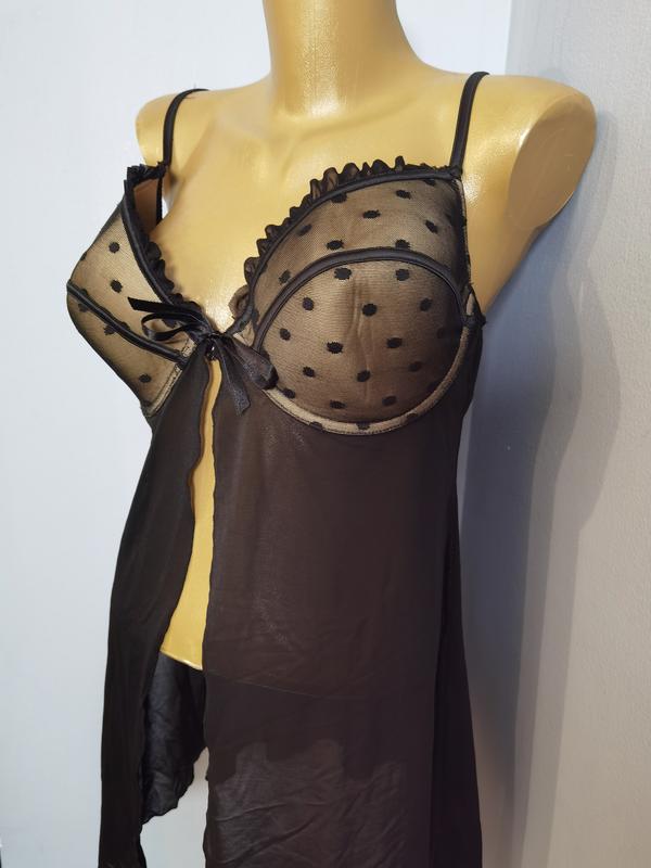 🌸Сексуальный брендовый пеньюар 🌸От бренда Matalan 🌸Модель babydoll на тонких бретелях, регулируются, длина коротка, спереди защелка, распорка, завязка лента 🌸Модель с чашечкой на косточках, формованная поролоном 🌸Фактура ткани микросетка 🌸Стильный оригинальный дизайн 🌸Отличное качество 🌸Размер L, на грудь 80Е, 85D