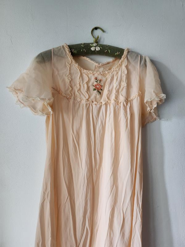 Винтажные пеньюар миди с цветочной вышивкой ретро винтаж ночное платье сорочка лолита coqu...