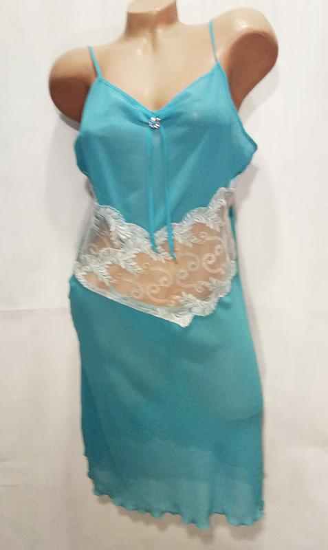 Пееьюар зі стрингами жіночий з мереживом блакитний з білим р l