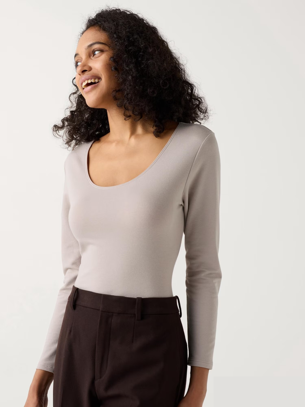 Cклад: 53% бавовна, 42% акрил, 5% еластан HEATTECH Extra Warm Cotton Scoop Neck T-Shirt в 1,5 раза * теплее, чем наш обычный «HEATTECH» м‘яка 100% бавовна зсередини горловина и укороченные рукава остаются скрытыми под внешними слоями эластичная ткань Ultra Stretch прилегает к телу специальная вязка сохраняет форму даже после многократной стирки
