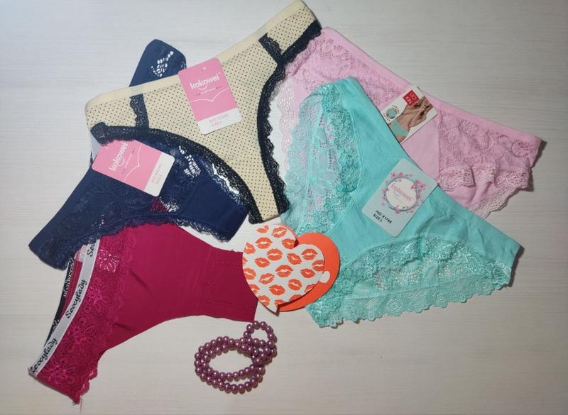 Зроби собі подарунок! Купуй 5 трусиків за акційною ціною. Моделі та кольори підберемо саме для Вас. Заміри, додаткові фото та розмірну сітку вказую в приватних повідомленнях. Оплата на карту, накладний платіж тільки по предоплаті, безпечна оплата. Відправляємо укрпошта, нова пошта та meest. Відправлення кожного дня, крім неділі. В місті Полтава підвозимо за домовленістю.
