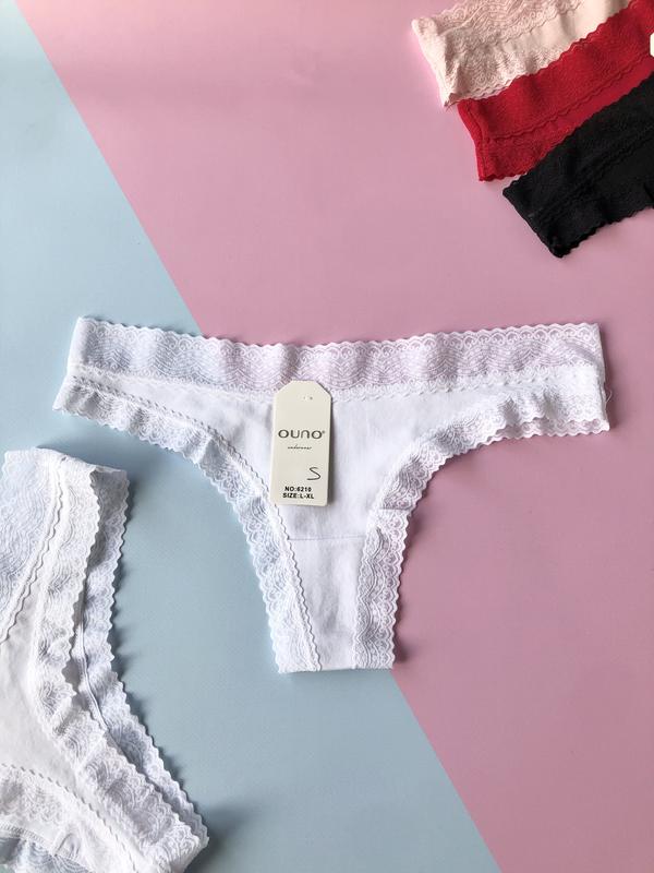 Брак торг Ouno Котонові стрінги з м’яким ніжним мереживним оздобленням. Кольори: рожевий, білий, малиновий, чорний. Розмір XXS/XS на об’єм стегон 80-88 см - на фото заміри червоних трусиків. Розмір XS/S на об’єм стегон 88-95 - заміри на фото білих трусиків. Вітаємо у нашому магазинчику 🌺 👙у нас виключно нові речі (outlet); ✂️можуть бути зрізані бірки/етикетки; 📏заміри вказані на фото; 📦 відправка наступного дня після оплати; ↪️ Повернення, обміну категорії «білизна» немає; 🚚 Пересилка Укрпоштою, Новою поштою; 📷 всі фото зроблені власноруч; 👙🩲 на сторінці представлені переважно європейські/американські бренди; Робіть вибір усвідомлено, звертаючи увагу на заміри та опис. Звертайтесь, з задоволенням проконсультуємо. Гарних покупок!