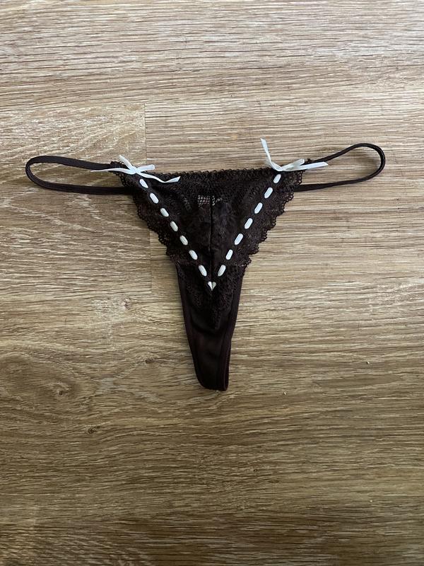 Шикарные, базовые, трусики, стринги, шоколадного, цвета. Очень удобные, на каждый, день. Красиво, и сексуально, смотрится на фигуре. Брендовые фирмы: H&M. брендовой фирмы: lepel.Размер указан: M. Состав : 74% полимид, 15% коттон, 11% эластин. Подкладка, в середине: 100% коттон.