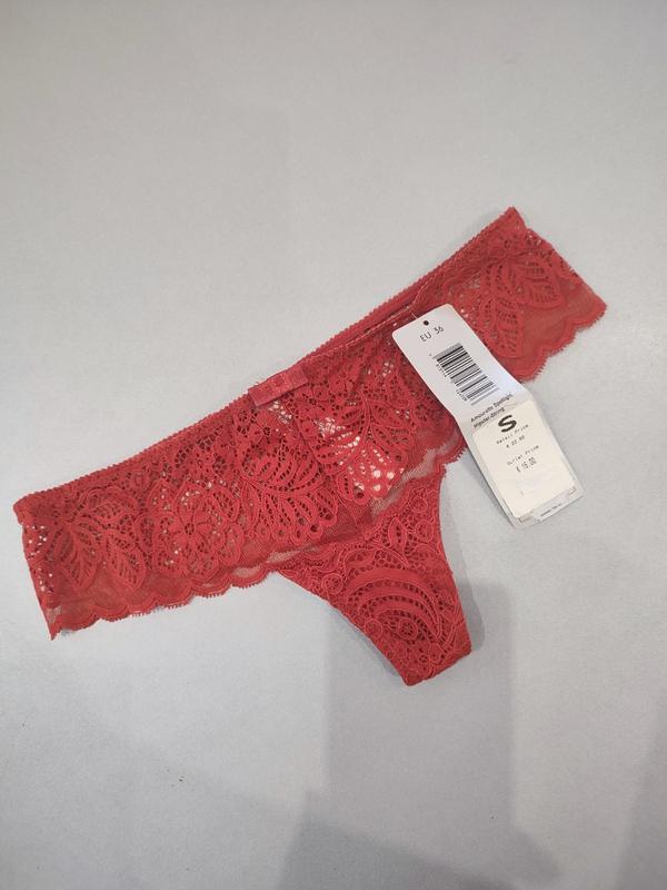 Очень красивые,мережевые трусики от дорогого немецкого бренда. Размер 36( наш 42). Цвет -теракотовый. Ориентируйтесь по замерам. Делайте покупку обдумано. Возвращение и обмен не имеет. Продаю только новые,стоковые вещи.