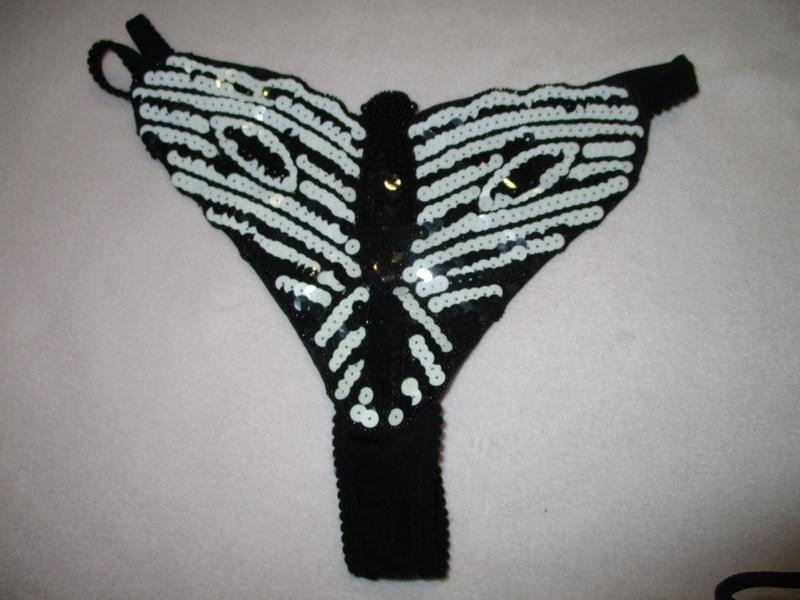 стринги черно-белого цвета.полиэстер.паетки.ПОТ 28.высота 20см