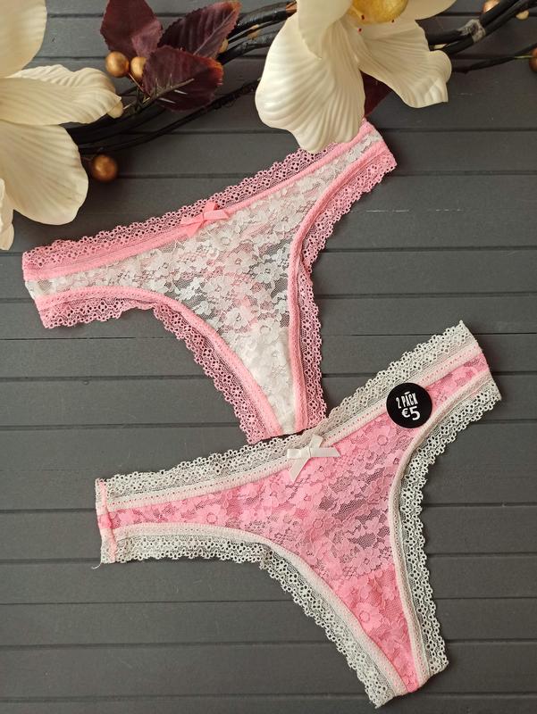 Комплект 2 шт. красивых кружевных трусиков стрингов
