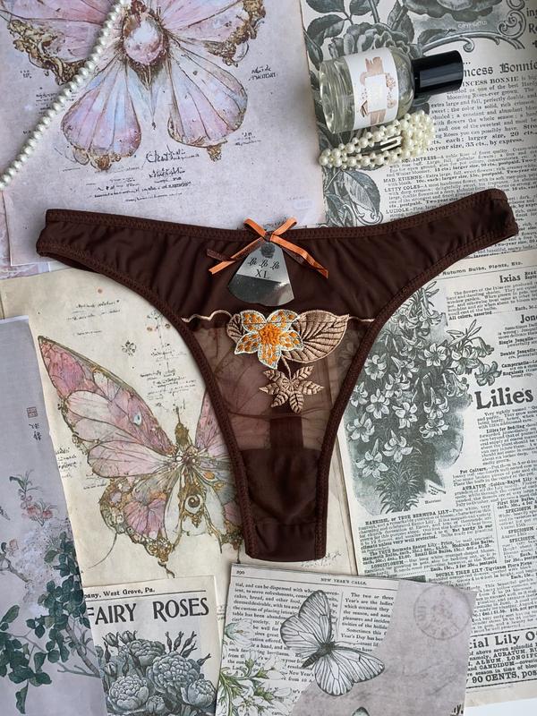 Стринги с вышивкой🦋трусики с сеточкой бикини