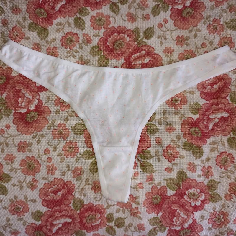 Трусики 42-44 р Primark стринги Сток из Англии Трусики из хлопка. Модель стринги. На наш 42-44 р идеально сидят, указан размер 6/8 англ. Посадка средняя. Пояс: 31 см, тянется до ... 53 см Высота по центру: 18,5 см Цвет: белый в розовый горошек ПРИЯТНЫХ ВАМ ПОКУПОК!