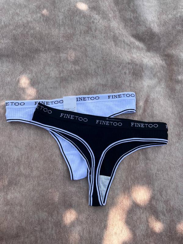 Трусики - стринги из хлопка, в рубчик, с высокой посадкой ✨ В комплекте двое трусиков (черного и белого цвета) Размер: M (объем бедер до 93 см) L (объем бедер до 97 см) XL (объем бедер до 102 см)