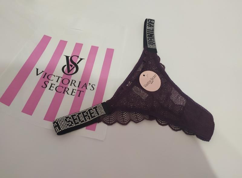 Ажурные трусики танга цвет - винная (слива) с логотипом vs со стразами •. размер: std (46/...