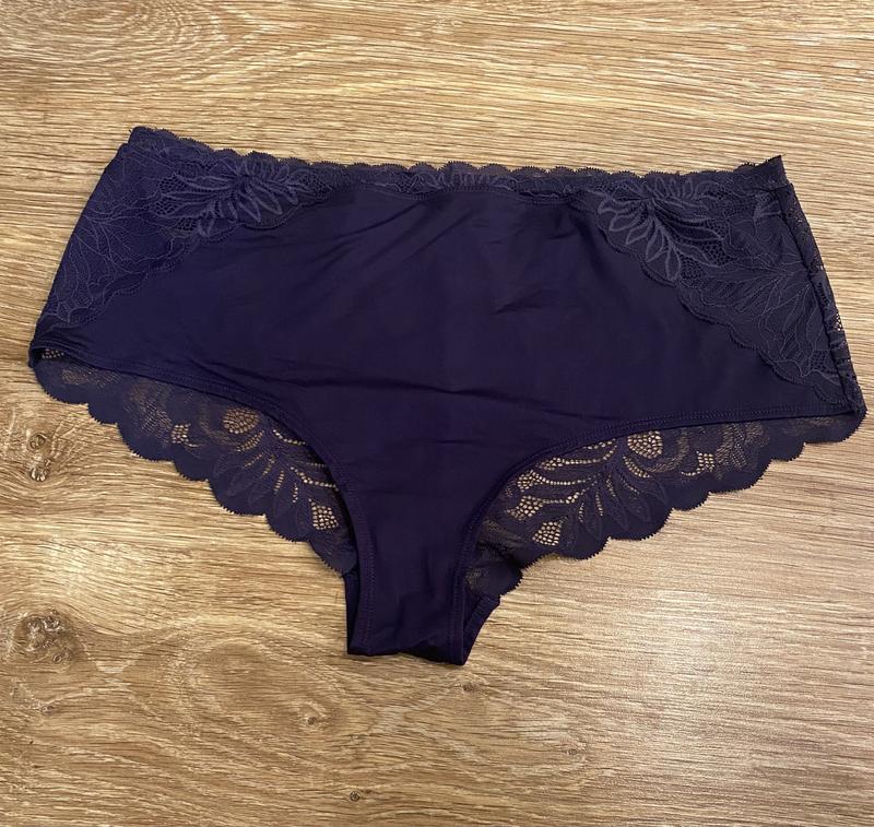 Шикарні трусики, ажурні, темно синього кольору, з заднього плану ажурні. Дуже зручні, на кожен день . Красиво, і сексуально, виглядає на фігурі. Брендовоі фірми: Body essential by Tchibo. Виробник Германія. Розмір вказано: XXL. Склад : 85% полімід, 15% еластину. В середині, підкладка 100% котом.