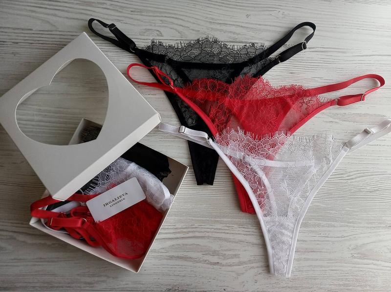Набор невесомых кружевных трусиков стринг 3 шт.🖤❤️🤍