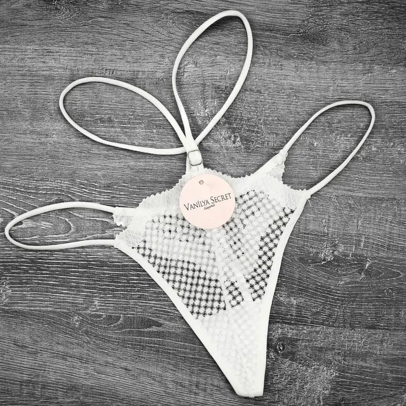 Ажурные стринги-стреп. Материал: 80% полиэстер, 20% эластан. Размеры: STD (44/46) Коляр: молочный Производитель: Турция