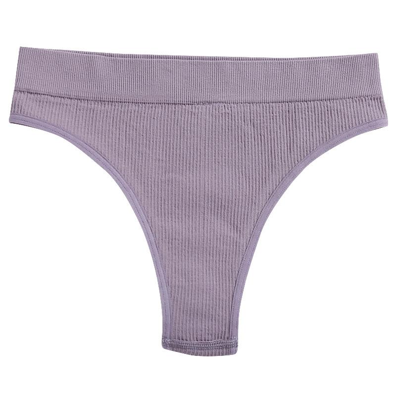 Женские бесшовные трусики lesko a66# лиловый m стринги в рубчик нижнее белье