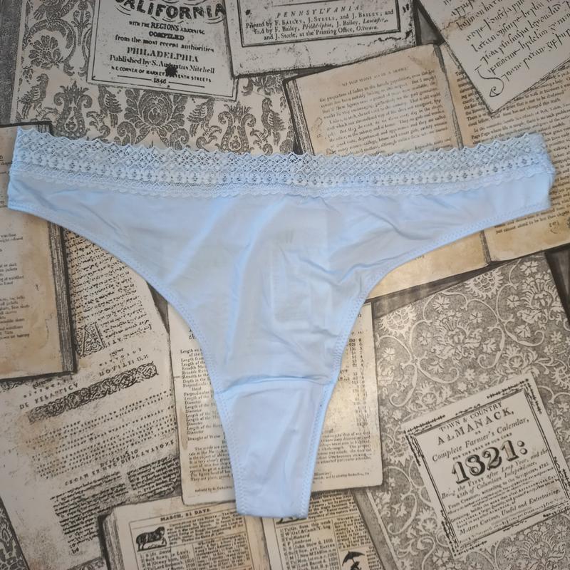 Трусики 44 р H&M стринги Сток из Англии Комфортные трусики из кружева и микрофибры. Модель стринги . На наш 44 р идеально сидят, указан размер евро S. Посадка средняя. Пояс: 32 см, тянется до ..52 см Высота по центру: 22 см Бочок: 4 см Цвет: голубой ПРИЯТНЫХ ВАМ ПОКУПОК!