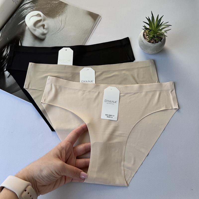 Набор 3 шт бесшовные трусики слипы из нежной микрофибры с лазерной отделкой краев 48-50😊
