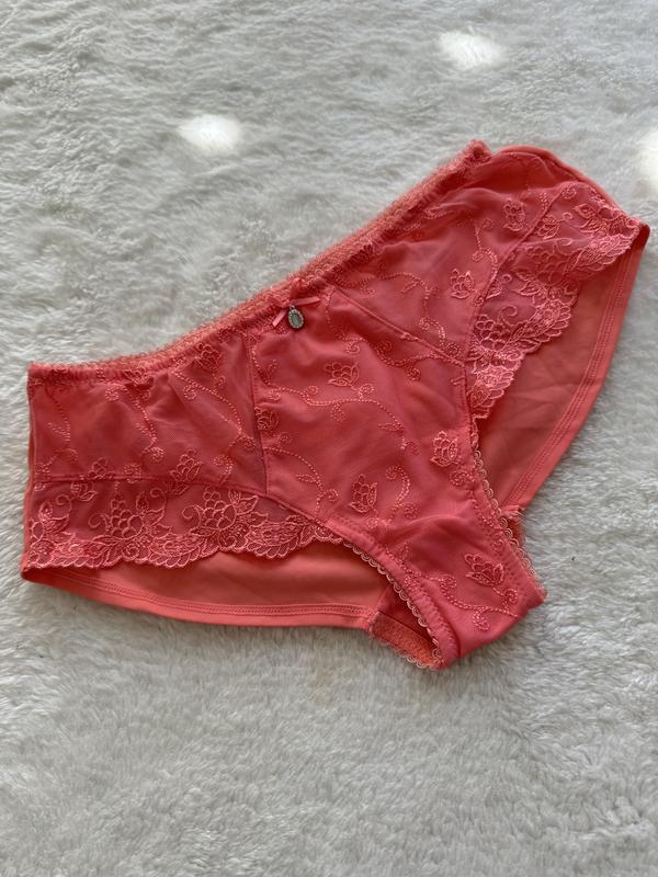 трусики оздоблені мереживом коралового кольору. РОЗМІР: S/M ЗАМІРИ: Об’єм 40/50 Посадка 23 СКЛАД: поліамід еластан СТАН: ідеальний ➖➖➖➖➖➖➖➖➖ Речі в наявності👗🧥👠 Фото на собі не роблю. 🙅♀️ Відправка: НП, Укрпошта📦 Всю необхідну інформацію надам😊