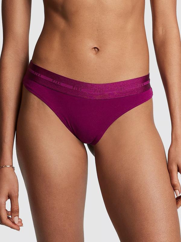 Коттоновые трусики стринги пенк от виктория сикрет logo thong panty