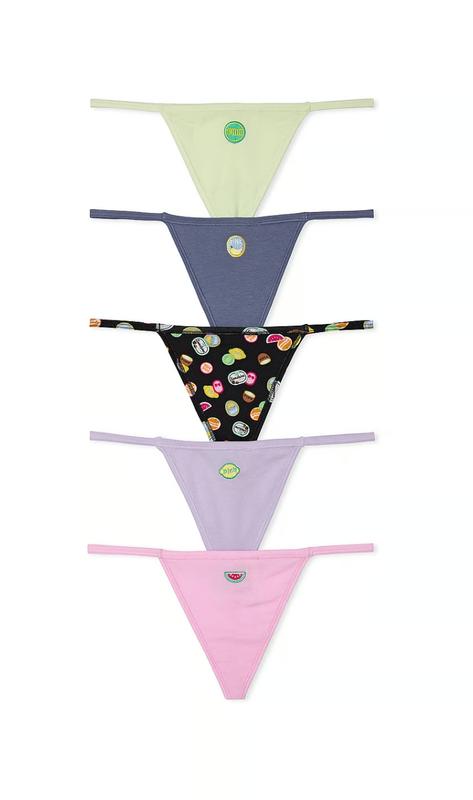 Упаковка из 5 хлопковых трусиков-стрингов с v-образным вырезом victoria’s secret pink, раз...