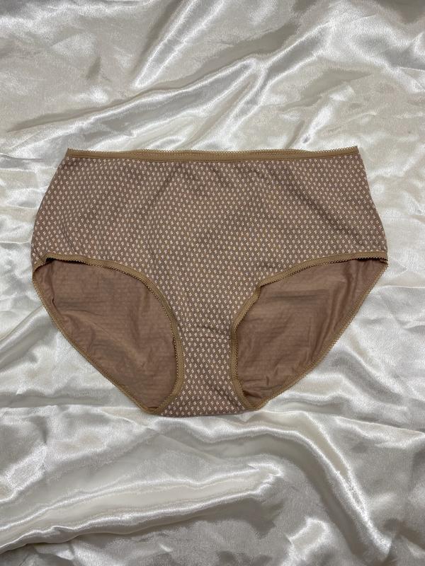 Ідеальні бежеві хлопкові труси глибокі закриті плюс сайз з принтом малюнком