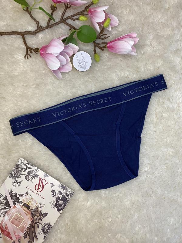 Трусики виктория сикрет танга хлопок с лого поясом темно синие оригинал victoria's secret
