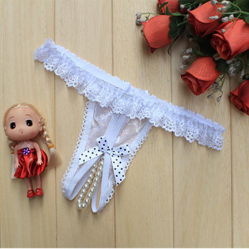 Трусики з розрізом та намистинками стрінги з доступом 826