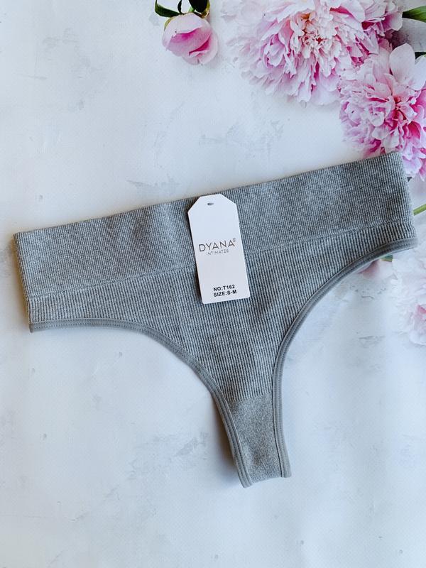 Стрінги з завищенею посадкою у мілкий рубчик Завдяки широкій резинці гарно утягують ділянку живота та боків. S/M на стегна 88-100 см L/XL на ОБ 100-110 см