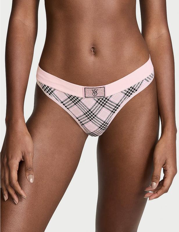 Трусики victoria’s secret оригинал трусы стринги розовые клетка лого резинка