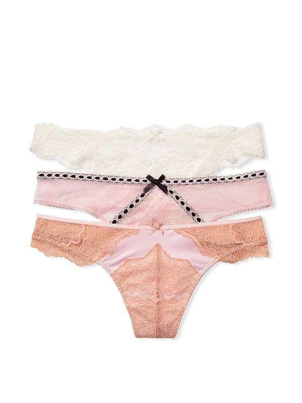 3-pack Thong Panties 🌸Низкая посадка 🌸3 шт в наборе 🌸Кружевная отделка 🌸Без покрытия сзади 🌸Машинная стирка
