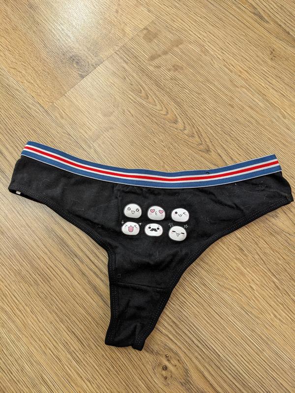 Трусики черные стринги с смайликами 32см тянется до 55см