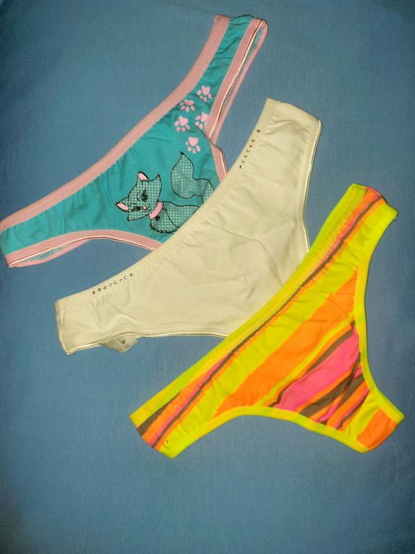 Набор трусиков-стринг Турция. Склад тканини-на фото. Размер идет на S. Замеры: ширина сверху по резинке-26см(белые-27см), растягиваются до 44-46см, высота трусиков-15, 5см (белые-18,5), збоков-5см. Цена указана за 3 ед. Пересылаю после оплаты на мою карточку. После платья и примерок нет,рицательна.