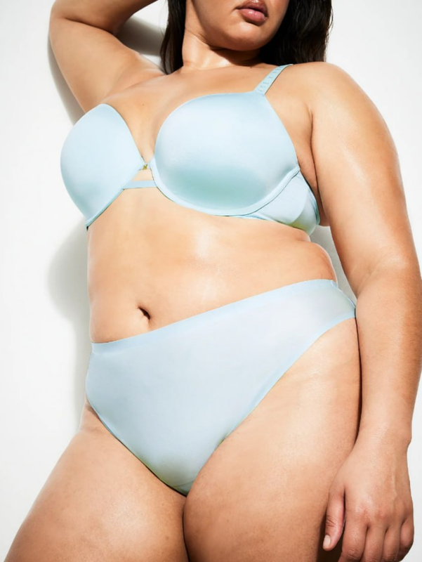 Размер L (UK 14, EU 40), S (UK 10, EU 36) Светло-голубые трусики-стринги из микрофибры приятные на ощупь и блестящие на вид, имеют среднюю посадку и гибкую укрепленную линию талии, что обеспечивает гладкий вид под одеждой. Среднея посадка Ткань из переработанного микроволокна Гибкая проклеенная талия с тисненым логотипом Хлопковая ластовица Состав основная часть: 77% переработанного нейлона, 23% эластана; ластовица: 100% хлопка