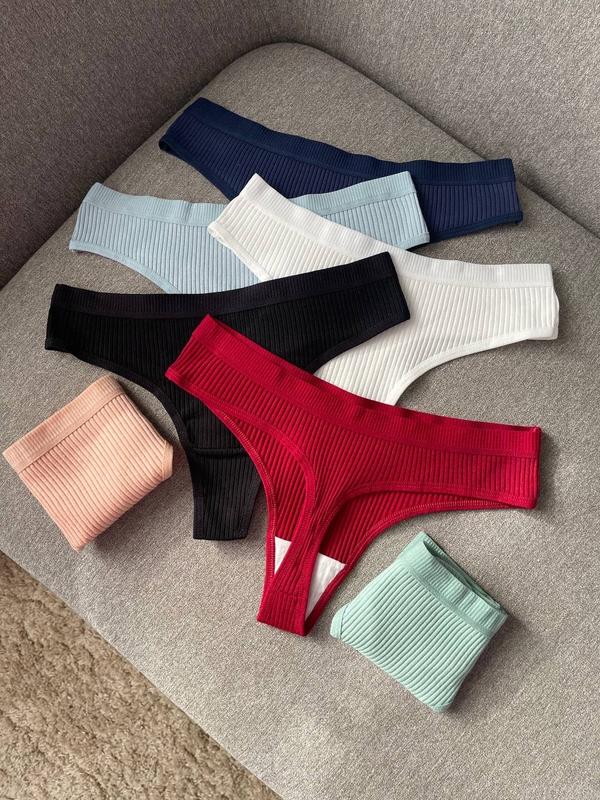 Набор базовые стринги в рубчик из хлопка 7 шт.