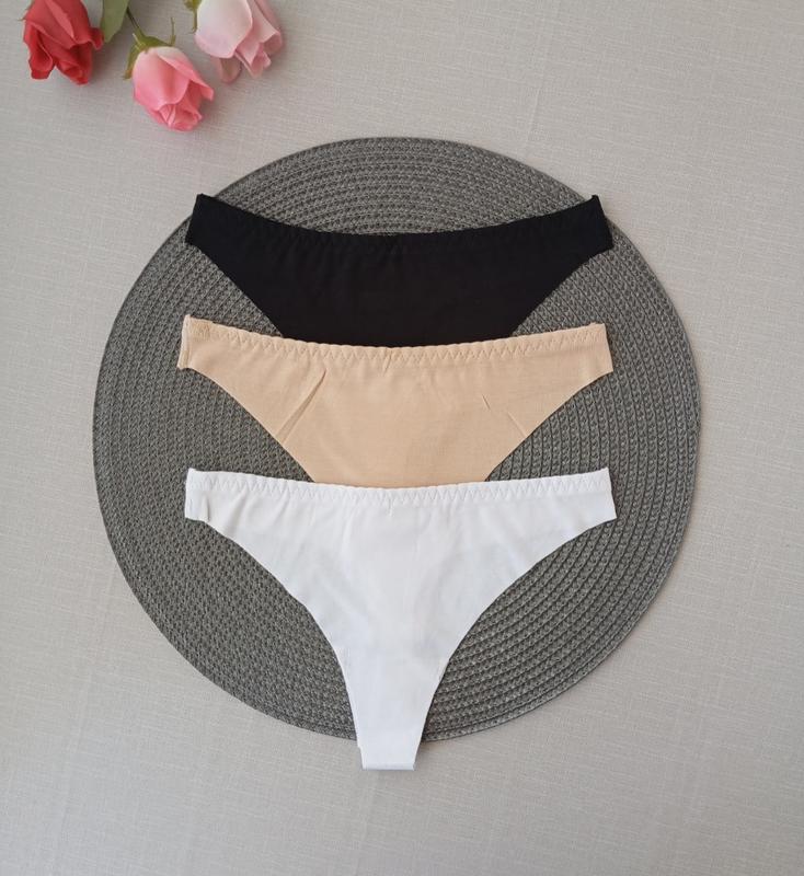 Гладкие трусики, базовые цвета белый, черный, бежевый Размер : S M L Отдыхаем новую почту или Укр почту после оплаты на карту в течение суток.
