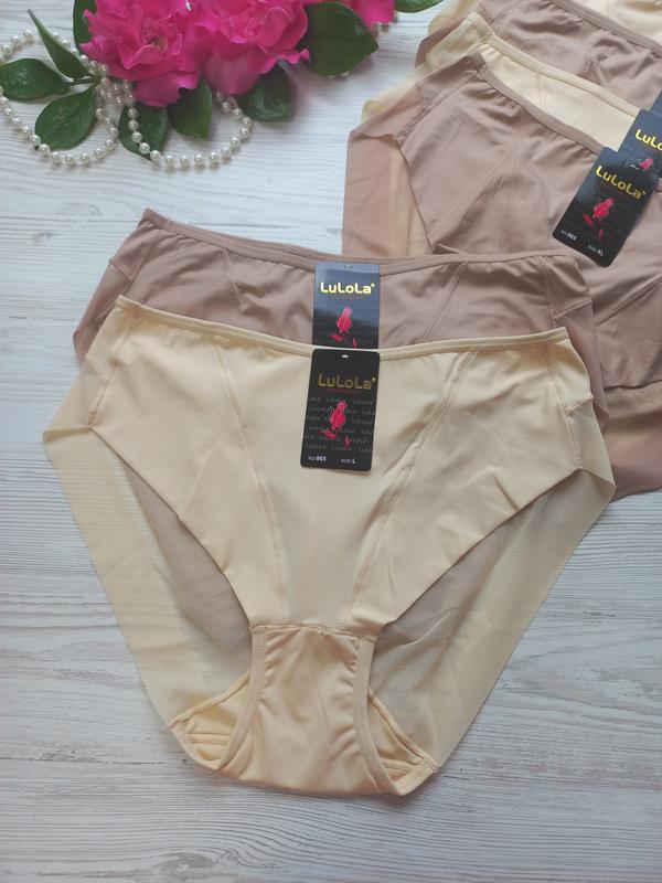 Полуобшивающиеся трусы из микрофибры и сеткой на ягодицах. Выполнены из тонкого и легкого материала с деликатной резинкой на талии, которая не давит и не оставляет следов на теле. Материалы: 65% фибра, 30% хлопок, 5% эластан цена указана за 1шт. - цвет капучино -цвет бежевый Размеры в наличии; 💜L - (подходит на 48) замеры трусиков: талия 31см. тянутся к 52 см. высота трусиков 27см. 💜XL- (подходит на 50) замеры трусиков. талия-32см. тянутся к 56см. высота трусиков 29см. 💜2XL- (подходит на 52) замеры трусиков талия 34см. тянутся к 62см. высота трусиков 29см. также в наличии и другие цвета
