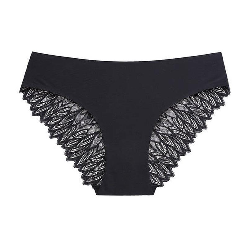 Бесшовные слипы с кружевом на попе и проклеенными швами. Ластовица из хлопка. Размеры: S, M, L, XL (44, 46, 48, 50) Цвет: черные, бежевые 8834