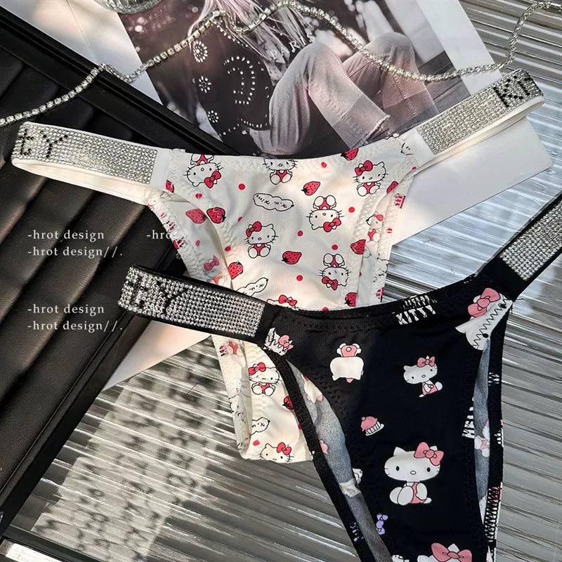 Набор трусиков со стразами принт аниме хеллоу котти victoria secret hello kitty (2 шт в на...