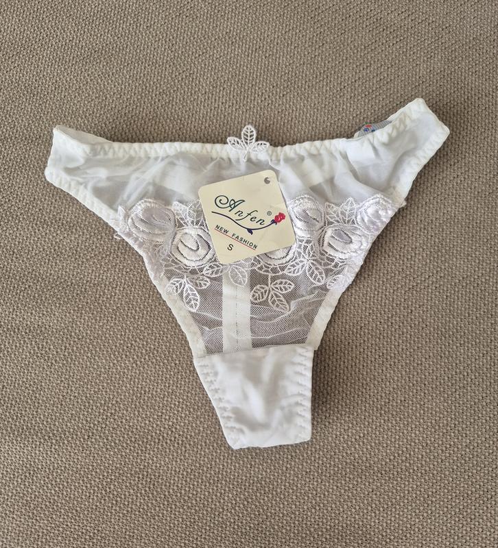 Очень красивые трусики стринги на высокой посадке. Сетчатые белые трусики с вышивкой, размер S 40% вискозы 40% полиамид