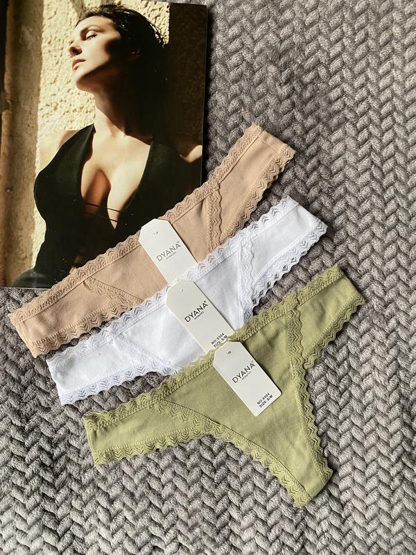 Стрінги з бавовни з мереживом 3шт. Розмір s-m. Стегна 90-98см.