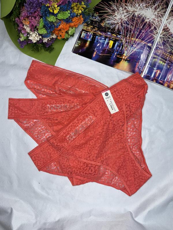 Набор комплект 3 от трусики слипы кружево лезвия l л 16-19 от marks and spencer m&s