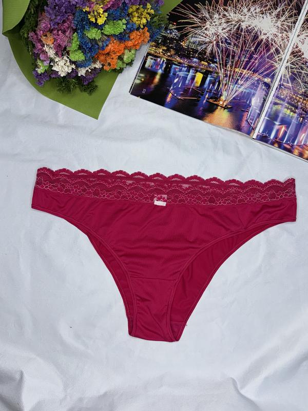 Поздравляю! У Вас есть возможность купить для себя невероятное фирменное новое оригинальное нижнее белье от Marks and Spencer. Трусики созданы для уверенных в себе девушек, которые знают, что такое хорошее качество. Трусики выполнены из эластичного мтериала и украшены сетевым. Ярко розового цвета. Имеют маркировку UK - Large, EUR L. Ниже замеры. Без бумажной бирки, новые. состав: 66% полиэстер, 19% полиамид, 15% эластан / спандекс. Ластовица выполнена из 100% коттона. Замеры (делала собственноручно, возможна незначительное погрешность): пояс - 41 см (тянется до 65 см) посадка - 25 см Можете оформлять безопасный союз и удивится на поште. SMART доставка также подключена. Или оплата на счет ФОП, работаю официально. Отпрашиваю всеми перевозчиками (Новая Почта, Укрпочта, Мист, Розетка) без минимальной суммы заказа.