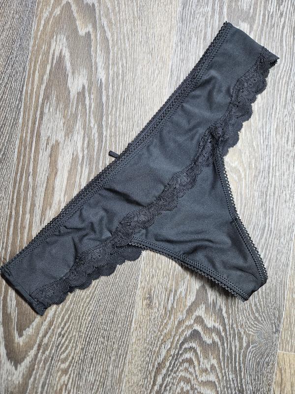 Трусики стринги Hunkemoller черного цвета, декорированы кружевом и бантом. Размер L